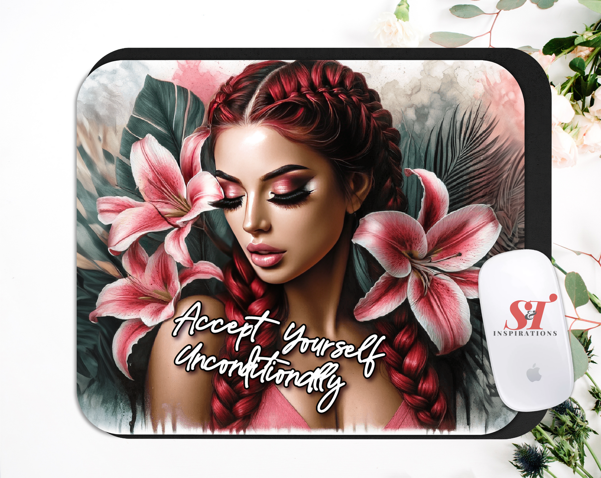 Create a workspace that promotes self-acceptance with our Accept Yourself Unconditionally Mousepad. This high-quality mousepad features a motivational message to remind you to love and accept yourself. Smooth surface and durable design make it a perfect desk companion for everyday use.