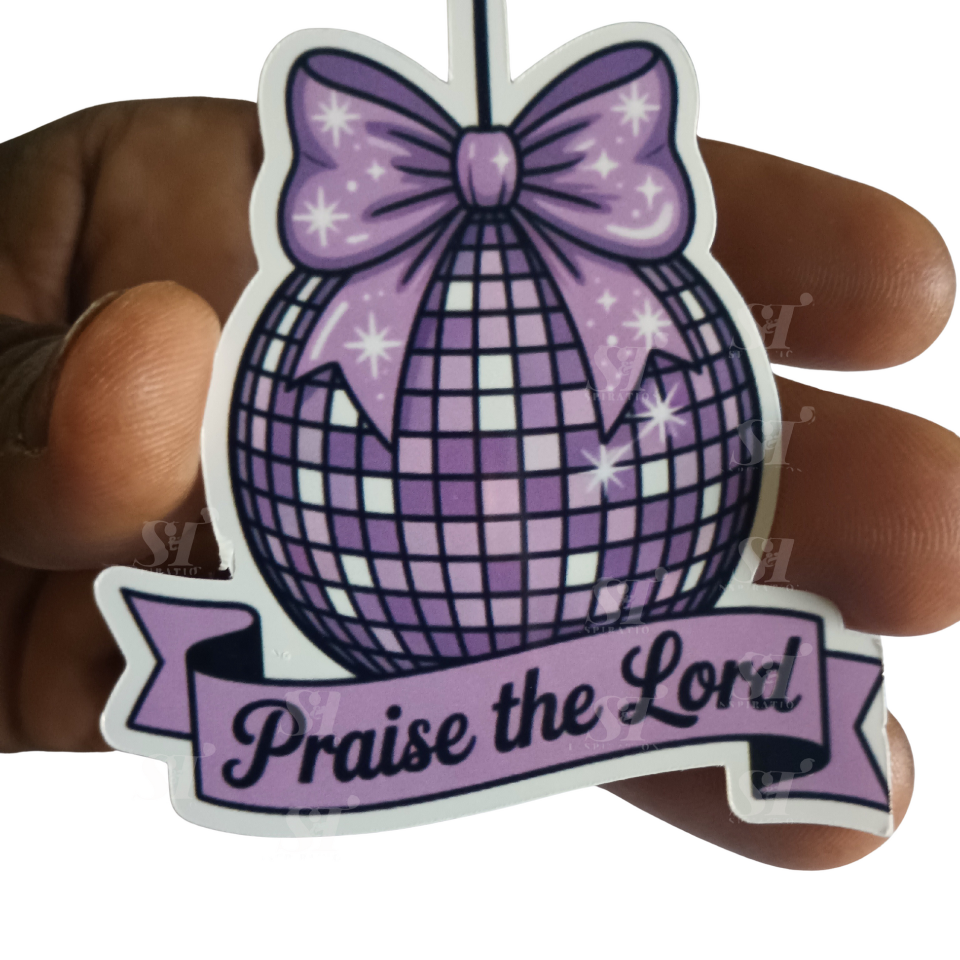 Praise the Lord Disco Ball Sticker – Pink Faith Sticker with Bow, Christian Aesthetic Vinyl Decal, Waterproof Bible Journal Sticker