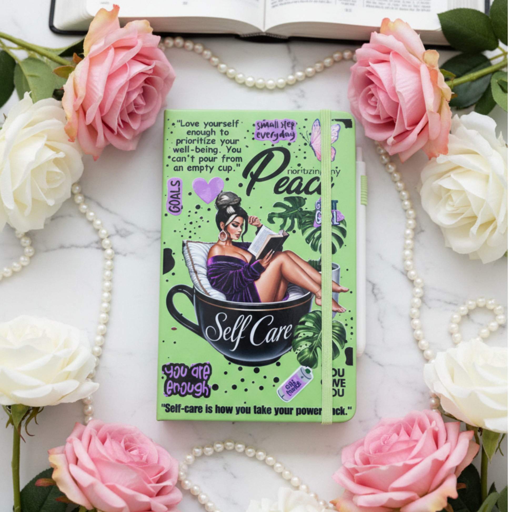 Sis, you can’t pour from an empty cup—and this journal reminds you daily to protect your peace. A beautiful, bold design to help you unplug and reflect with intention.