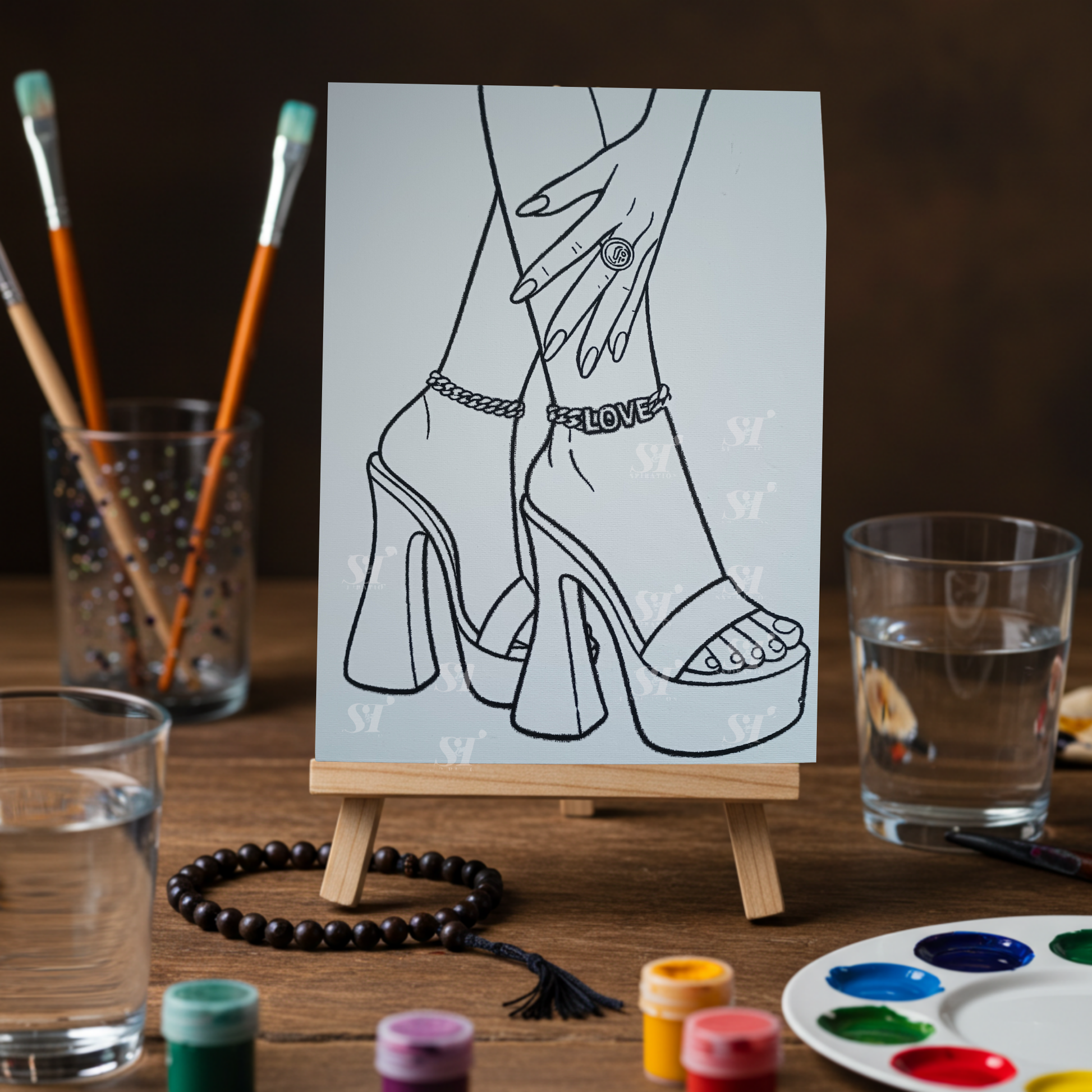 Chic, feminine, and fun to paint. This pre-printed heels line-art canvas features a “LOVE” anklet for a subtle faith touch—great for girls’ nights, birthdays, or self-care creativity. Clean outlines make painting easy for beginners and satisfying for pros.