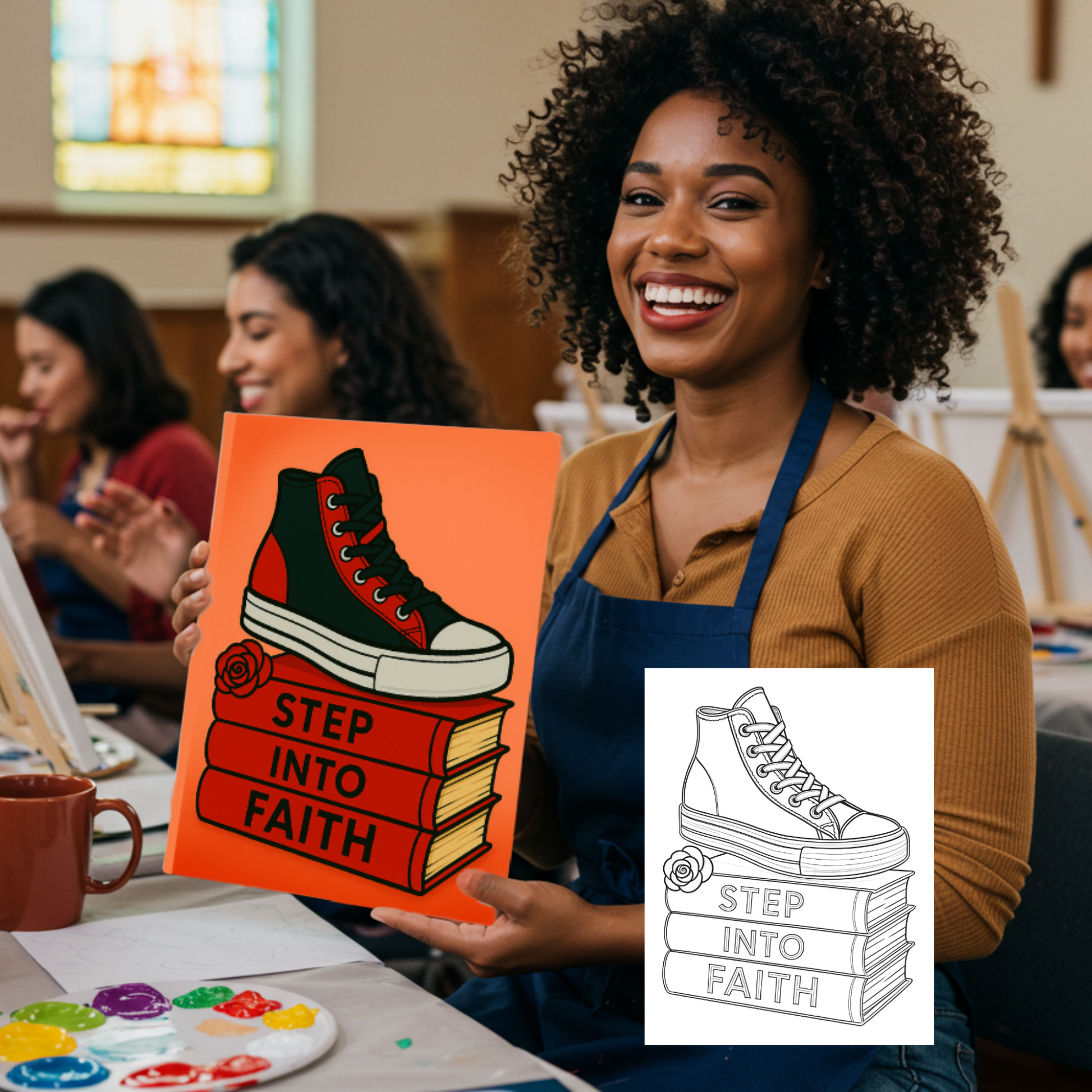 Encourage bold steps with this faith-forward canvas. The pre-printed sneaker-on-books design is perfect for church groups, youth nights, and gifts. Clear outlines make painting simple while the message inspires confidence and purpose.
